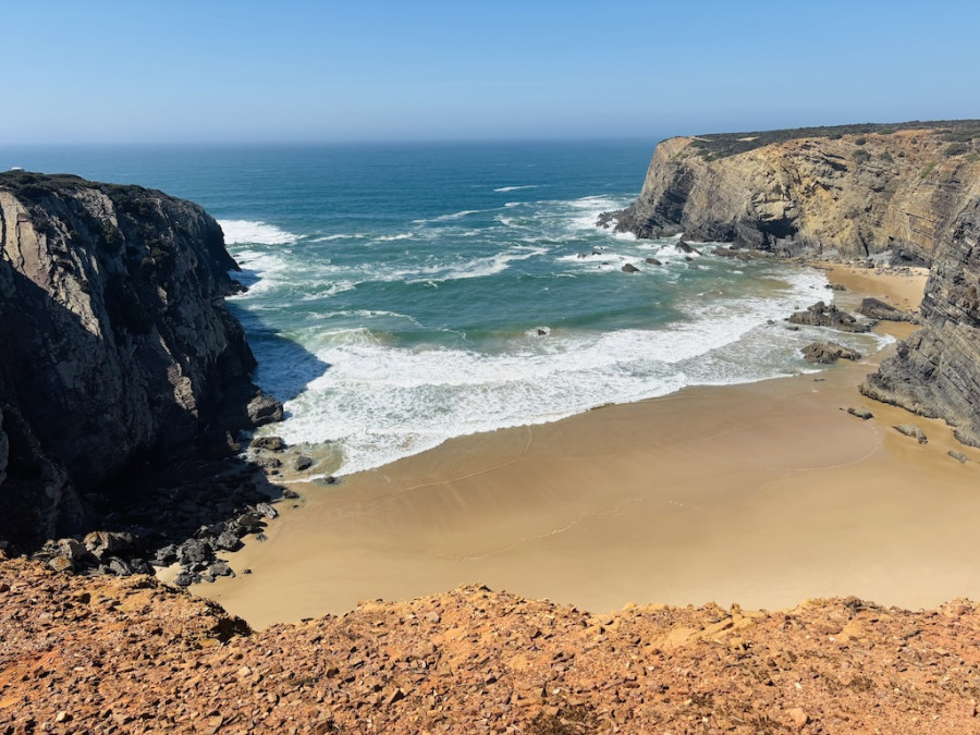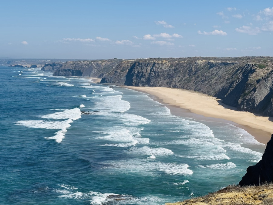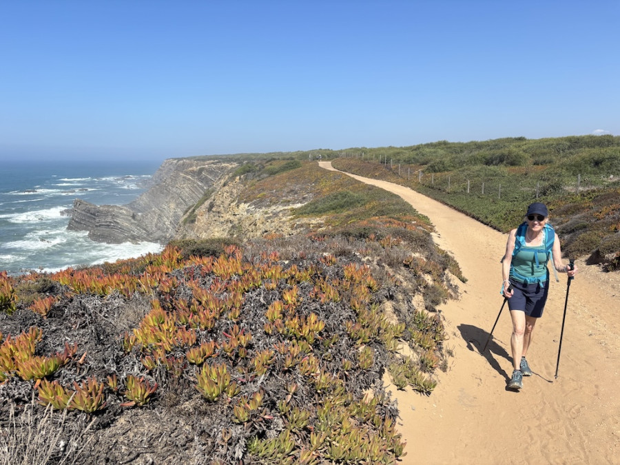 Our first hike starts by the mouth of the Seixe River where we step on to the Fishermen's Trail on a point-to-point route. Arguably one of the best coastal hikes in the world that connects Cape St Vincent, Portugal's most south-westerly point, to Porto Covo. Today's walk is said to be the most beautiful section of the entire 13 day fishermen's route. Through cliffs and dunes covered with vegetation the trail soon reaches the natural fishing port of Azenha do Mar where we can stop for refreshments at an impressive view point. Then we hike up and down through a series of incredible beaches accompanied by butterflies and wild flowers until we reach Carvalhal for our picnic stop. It's then onto Alteirinhos beach and our destination for today - the village of Zambujeira do Mar which means 'Seaside Olive'. Here the 'must do' things are to relax on the main beach Praia da Zambujeira—famous for its rugged cliffs and golden sand and sample the local ice cream before taking our taxi back to our accommodation in Odeceixe.